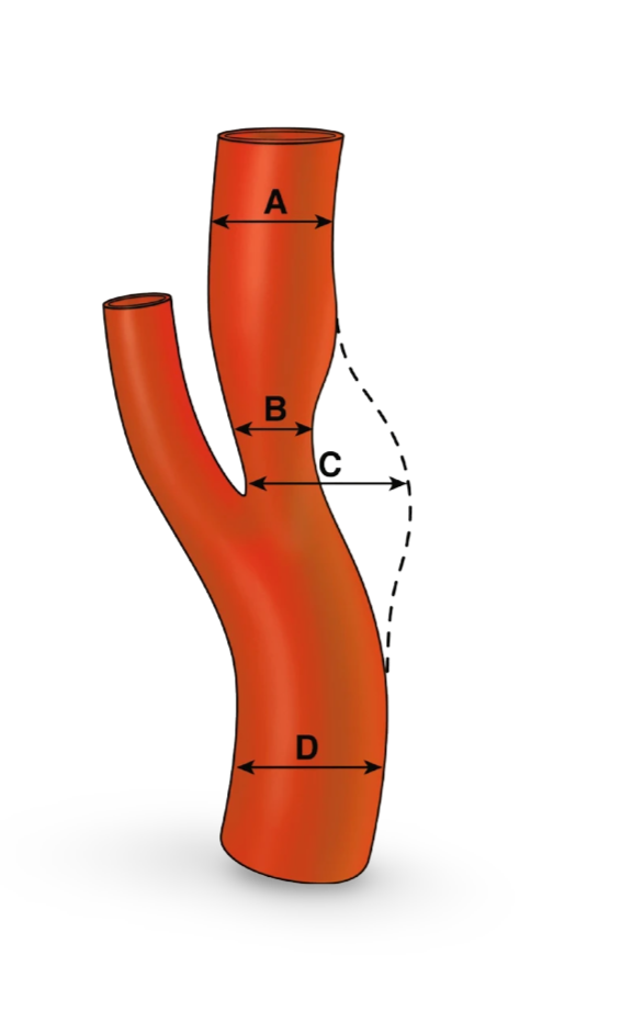 C: Diameter of estimated original width of the ICA at the site of maximal narrowing (mm)